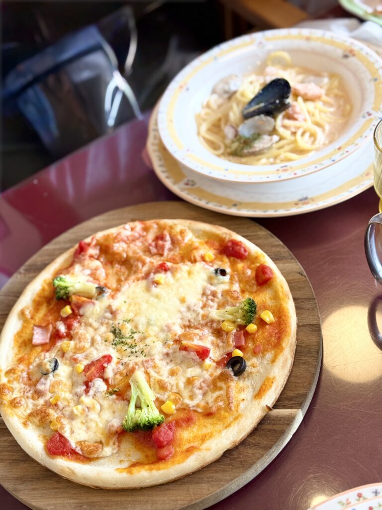 ちなみにピザはカプリチョーザ。たっぷり具材が乗って大人から子供まで楽しめる定番のピザです。
