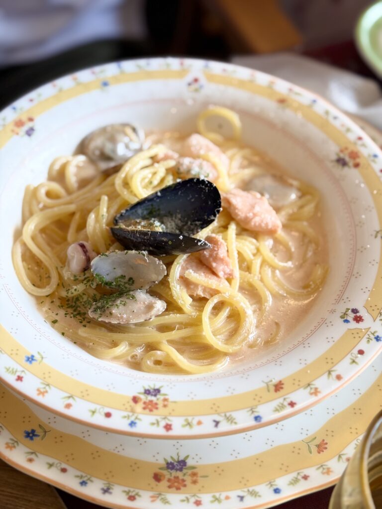 こちらはクリームたっぷりで鮭や貝類の旨味がガツンと来る旨味抜群のパスタでした。