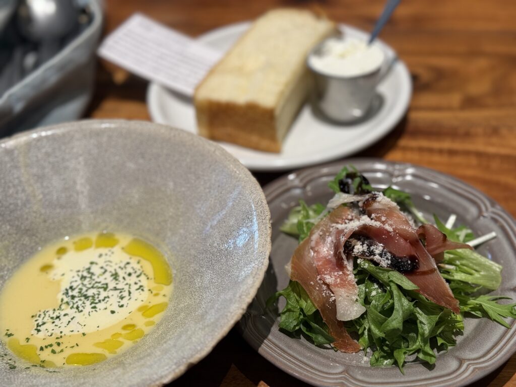 更にコーンスープと生ハムサラダ