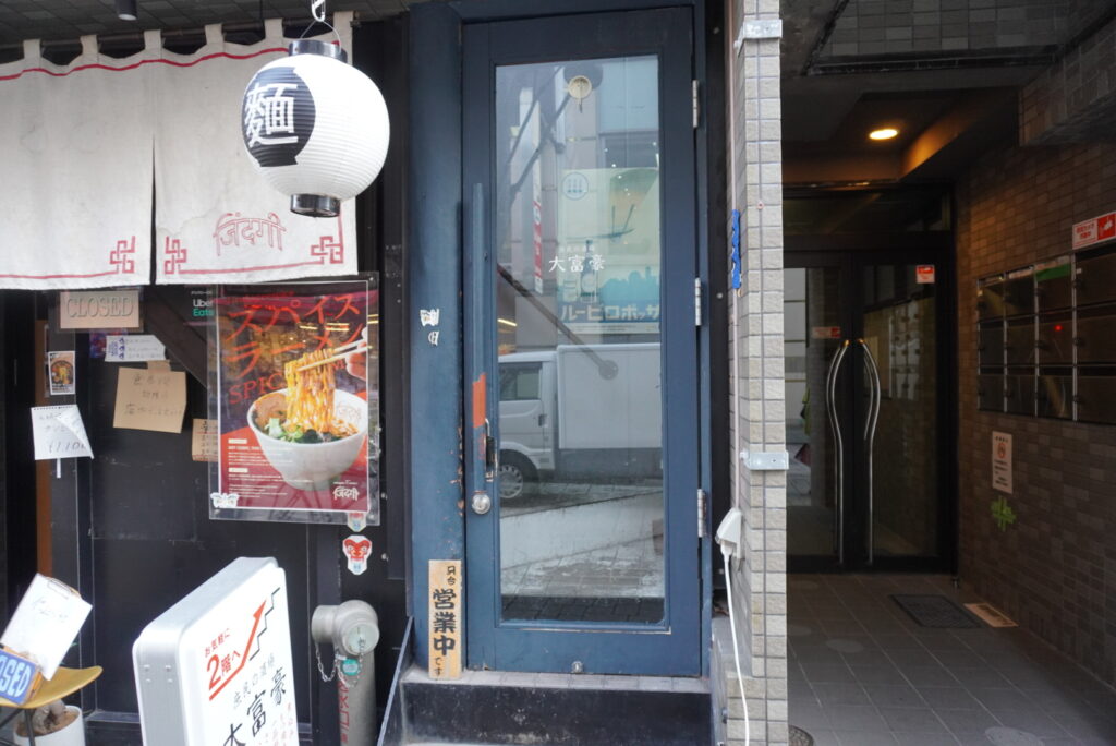 こちらの看板が見えたらドアを開けてそのまま2階へ。