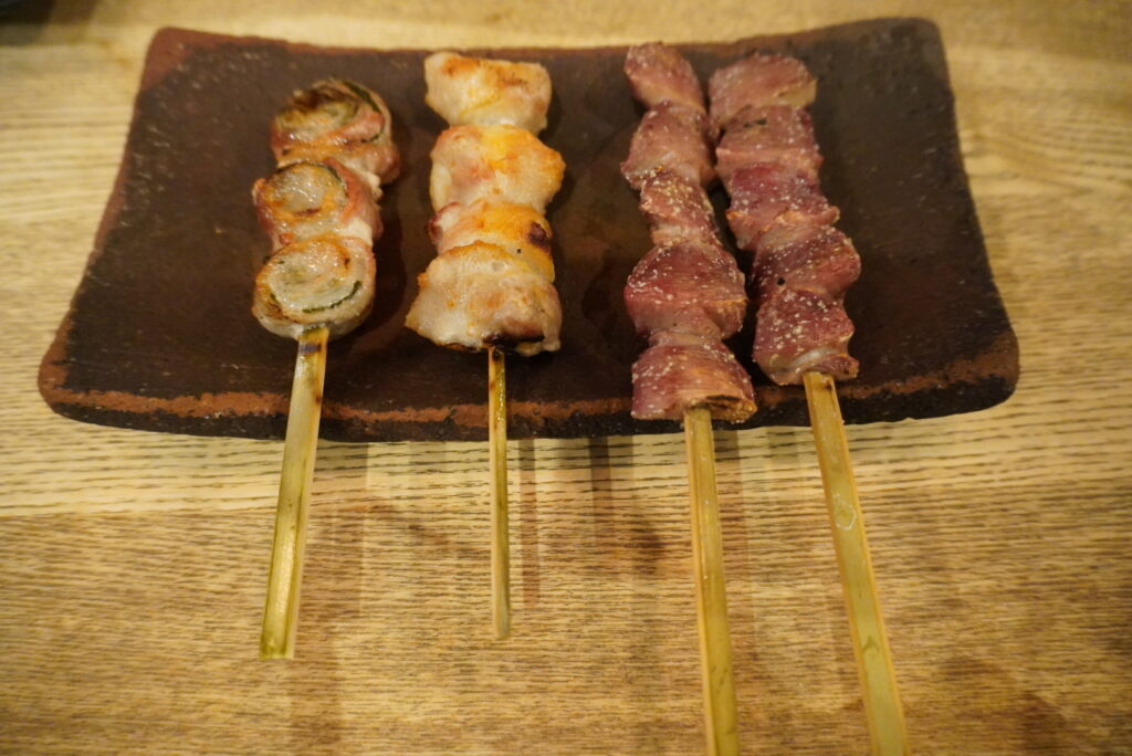 焼き鳥以外にも野菜巻きやつくねと目移りするメニューがズラリ。