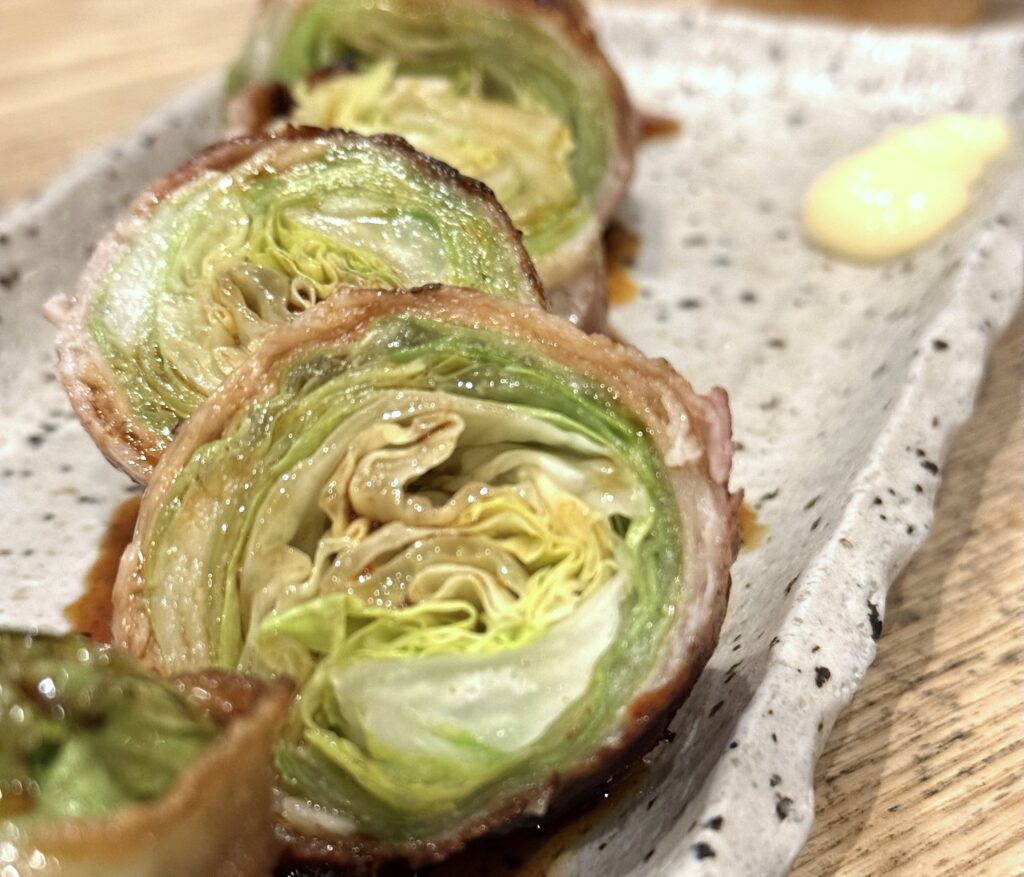 レタス豚巻きはかなりネタが大きくて中はレタスのシャキシャキ感が味わえます。