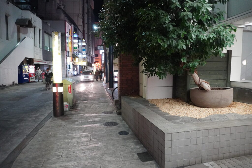 下通りの銀杏中通りに万礼さんはあります。ちなみにサクラマチから徒歩5分程の場所にあります。