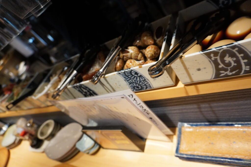 おでんや目の前にないお料理は店主にお伝えすると好きな具材をよそってくれます。