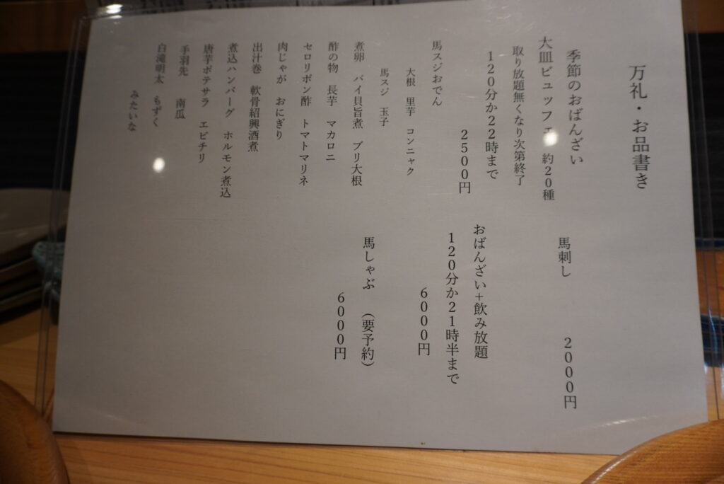 馬しゃぶや馬刺しは別途注文出来るみたいですが、馬しゃぶは(要予約)なので気になる方は是非。