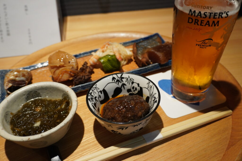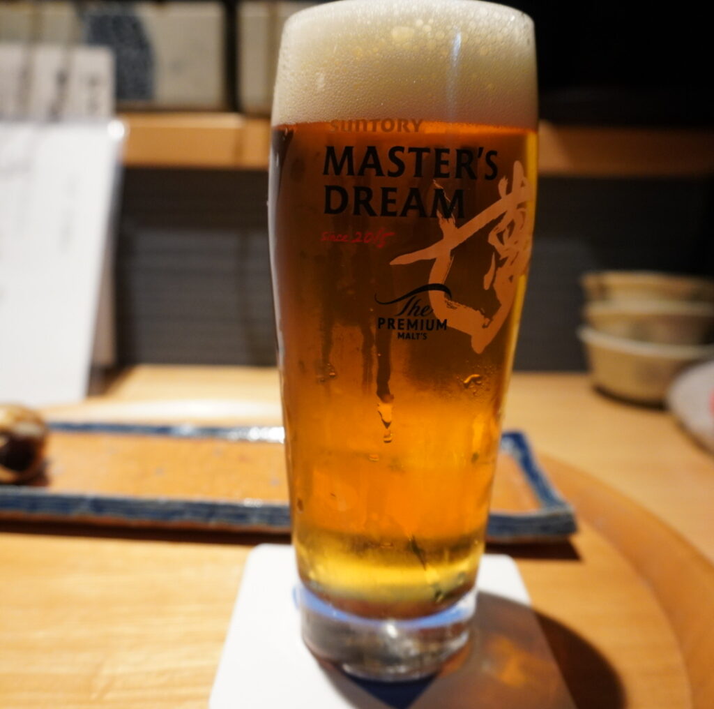 そうこうしてるうちにキンキンに冷えたビールが到着。ビールはサントリーの「ザ・プレミアムモルツ マスターズドリーム」