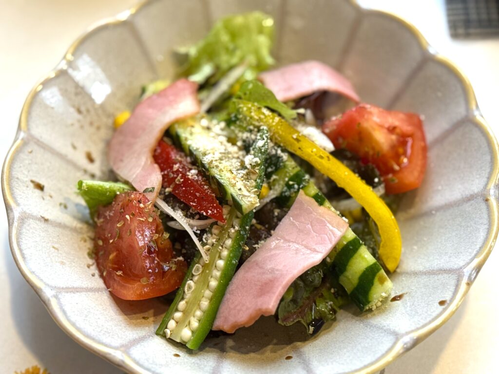 まずはサラダは「ベーコンのサラダ」