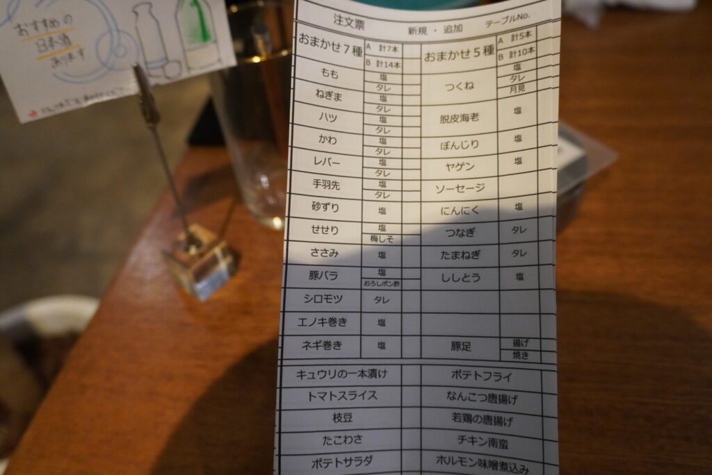注文は鉛筆でこちらの注文用紙に記入するシステム。書いたらピンポン押してスタッフに渡したら注文完了です。