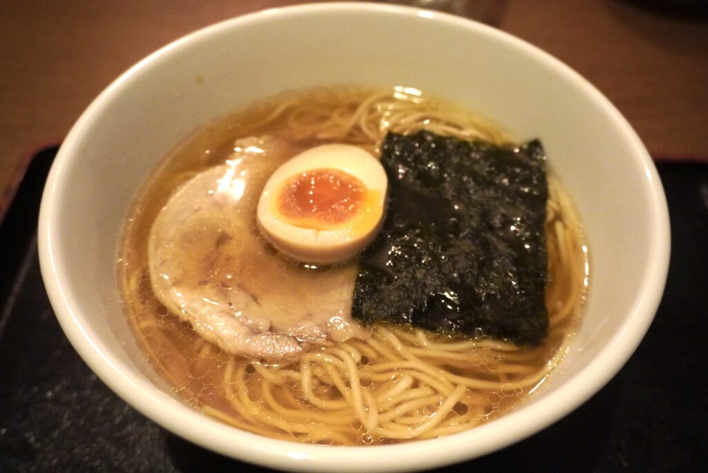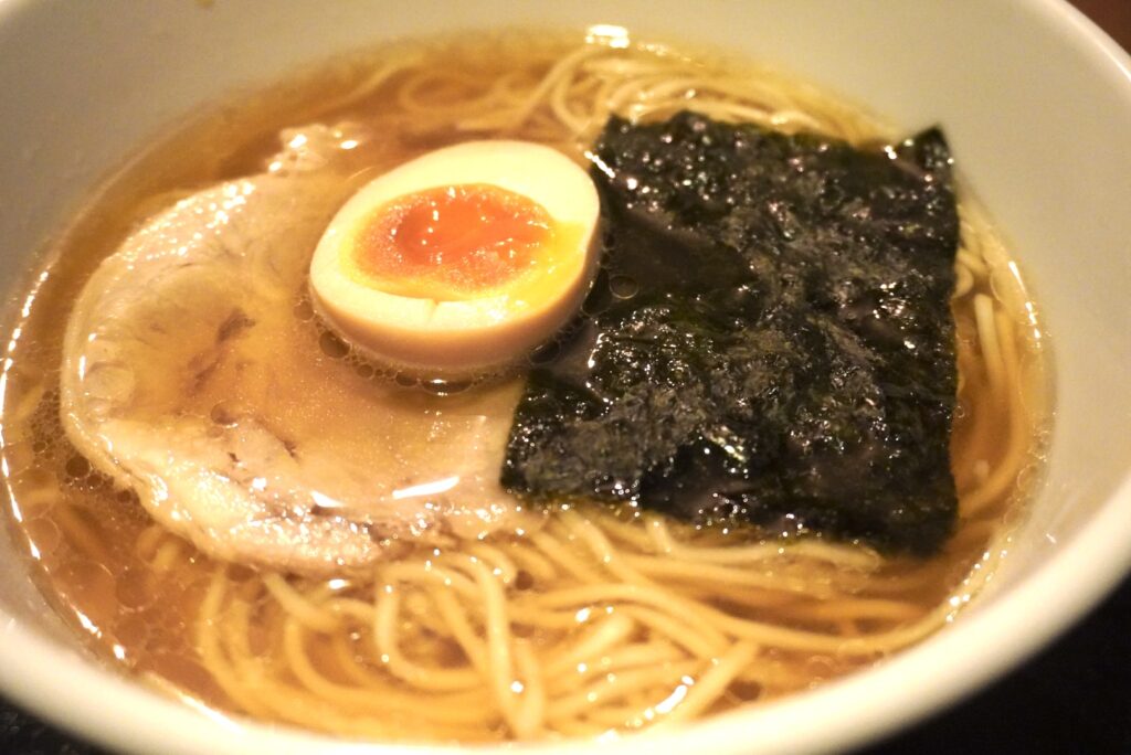 チャーシューと半熟卵に海苔とシンプルながら食欲を掻き立てる透き通ったスープー!