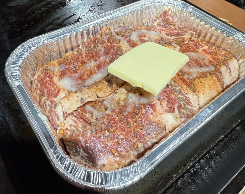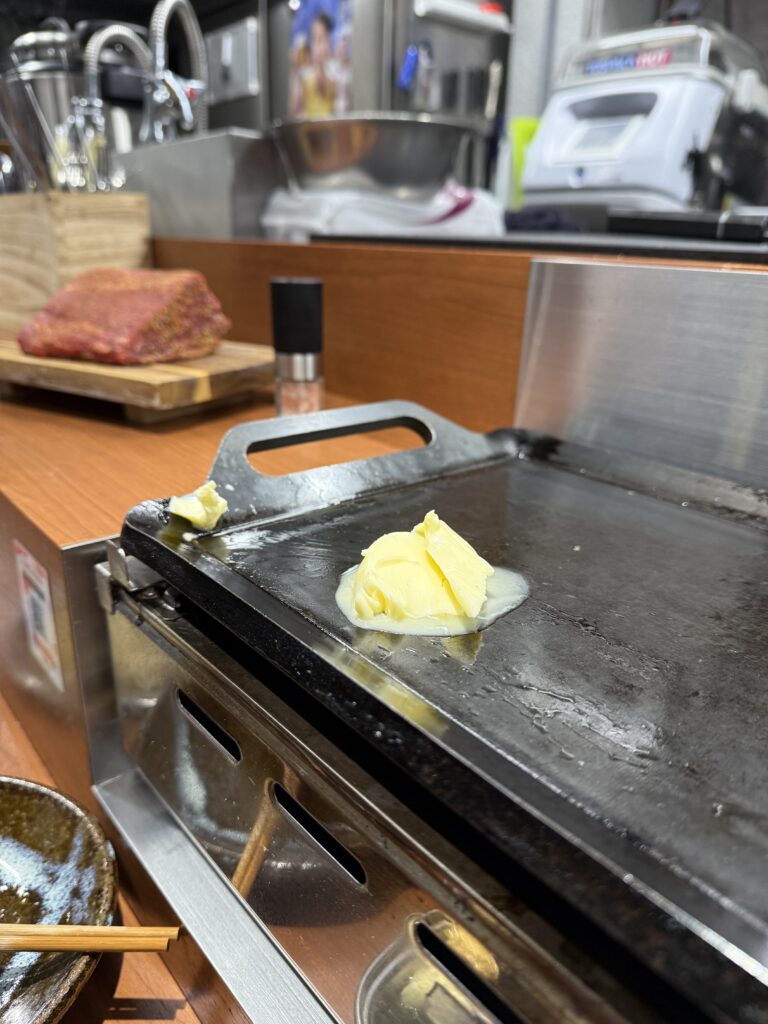 たっぷりバターを乗せたら豪快に焼いていきます!