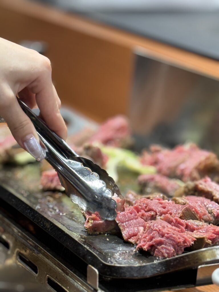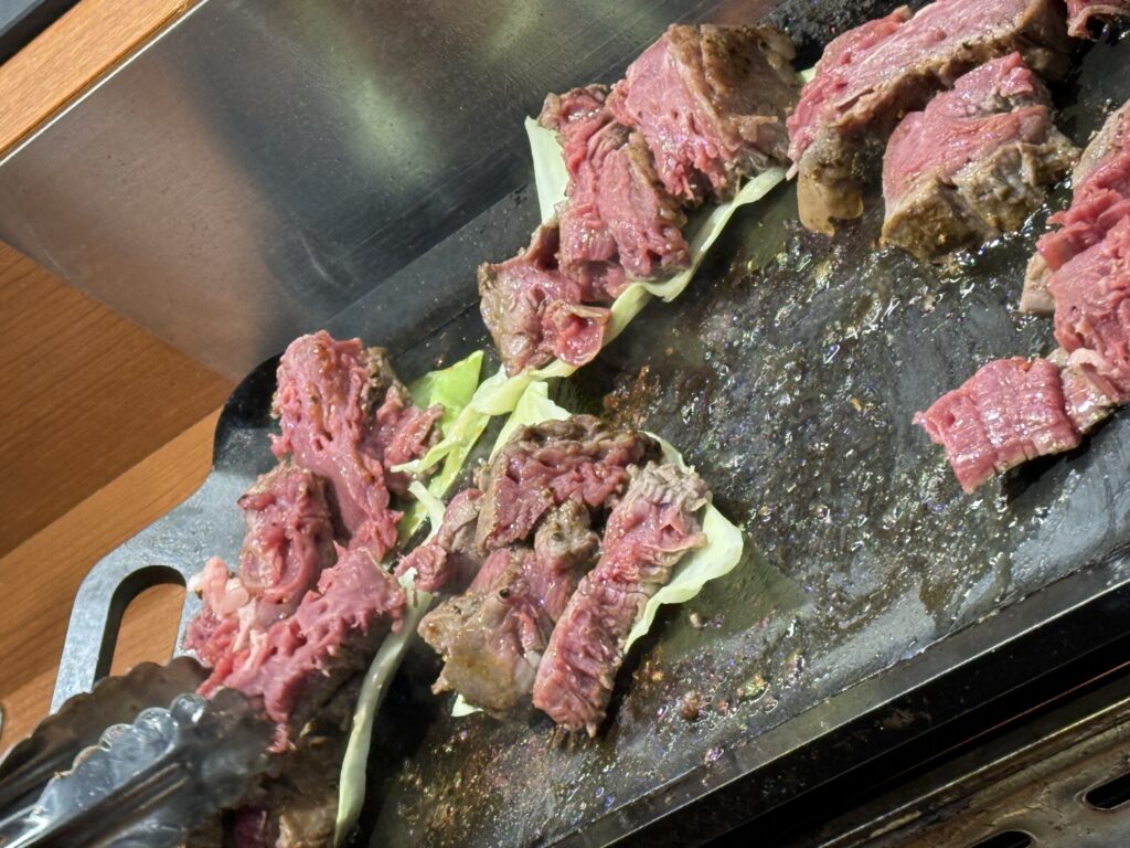 各お席に鉄板があり、ワイワイガヤガヤのBGMで賑やかな雰囲気です。
